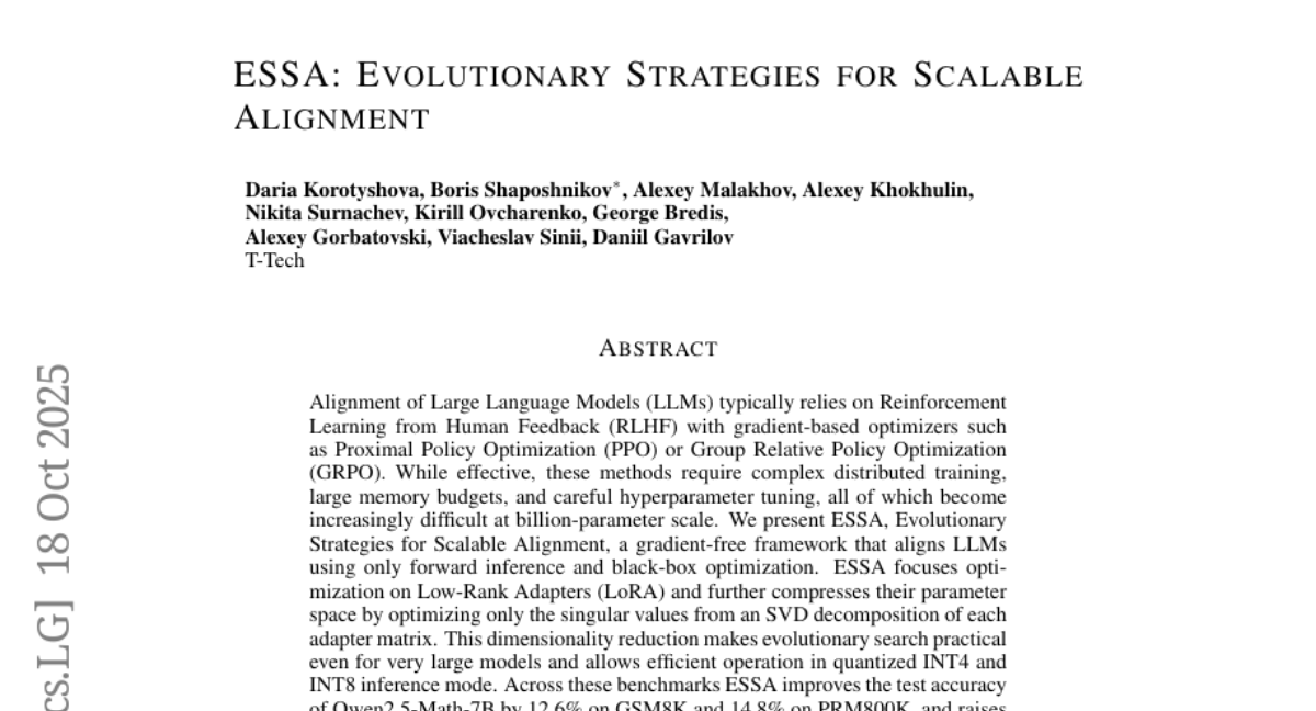 ESSA: Evolutionary Strategies for Scalable Alignment