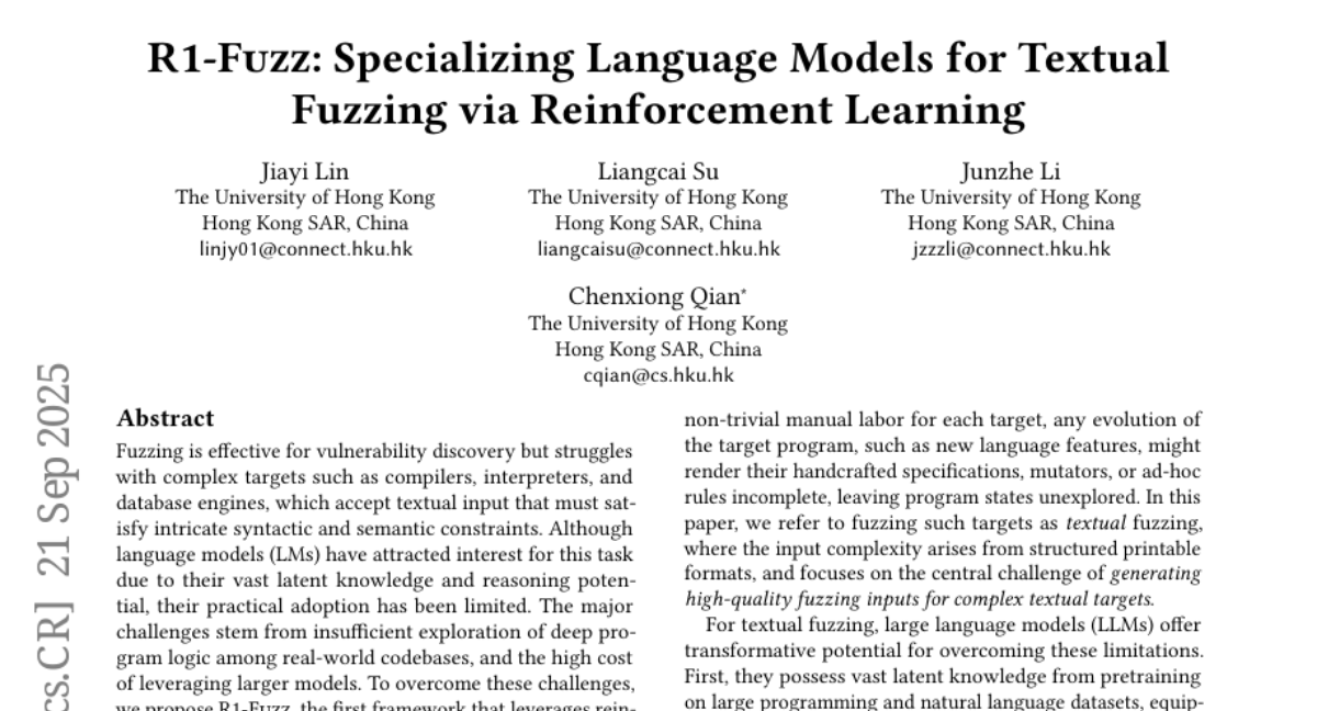R1-Fuzz: Specializing Language Models for Textual Fuzzing via