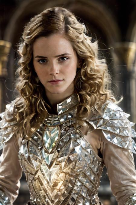 image = pipeline('Photograph of emma2009 woman, in a fantasy time period, wearing a crystal (armor, crystal4rmor). ').images[0]