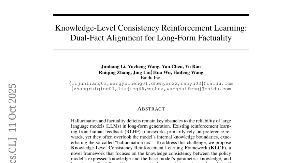 Knowledge-Level Consistency Reinforcement Learning: Dual-Fact Alignment for Long-Form Factuality