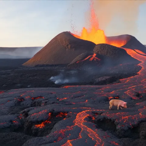 - a cute anime girl picking up a little pinky pig and moving quickly