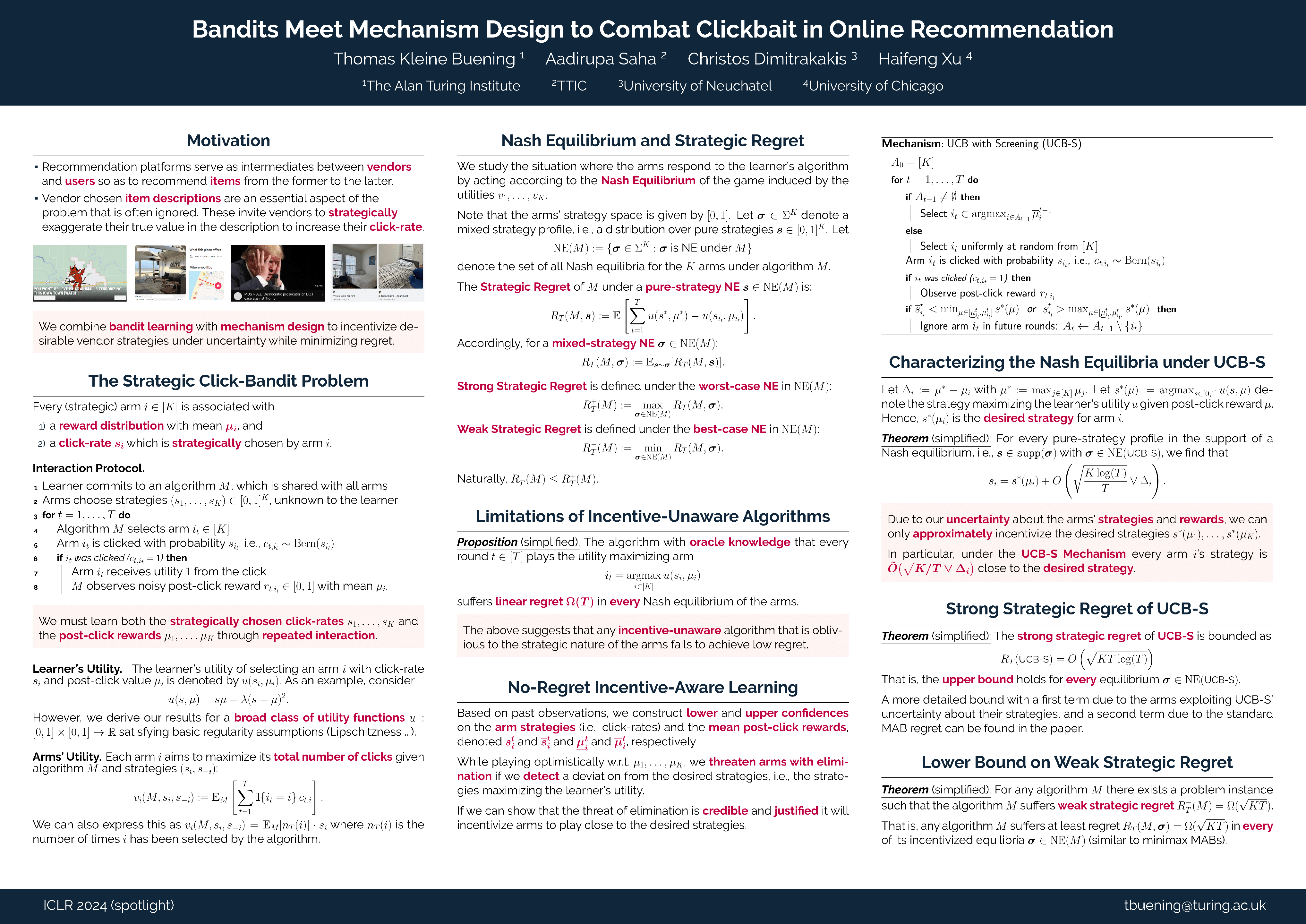 Bandits Meet Mechanism Design to Combat Clickbait in Online Recommendation