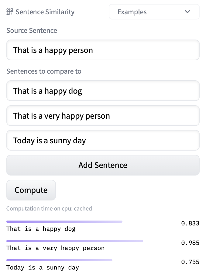 model = SentenceTransformer('model_name')Here is an example that encodes sentences and then computes the distance between them for doing semantic search.