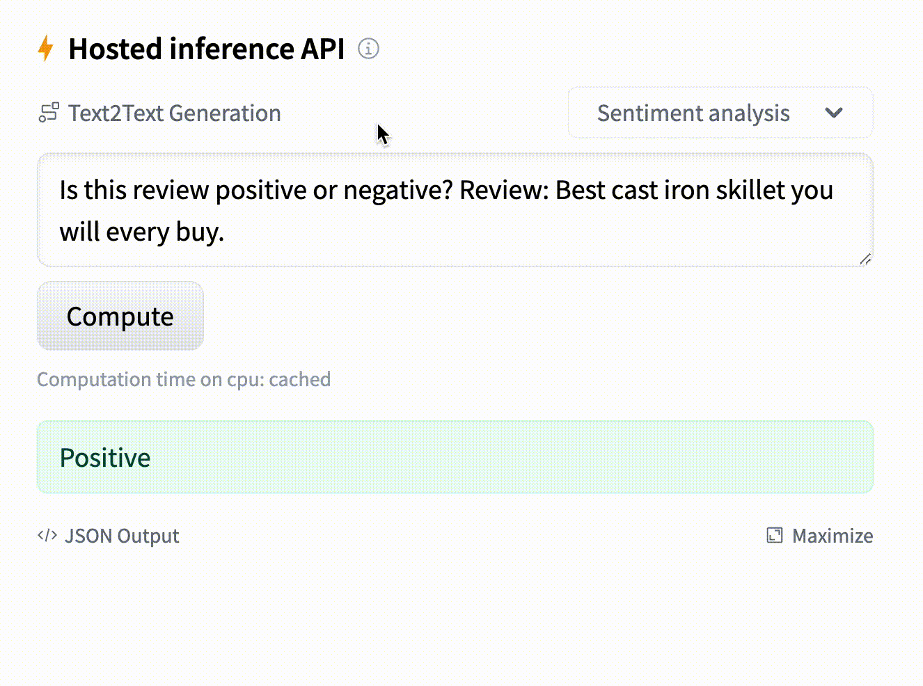 example_title: "Neutral Statement"You can provide more than one example input. In the examples dropdown menu of the widget, they will appear as Example 1, Example 2, etc. Optionally, you can supply example_title as well.