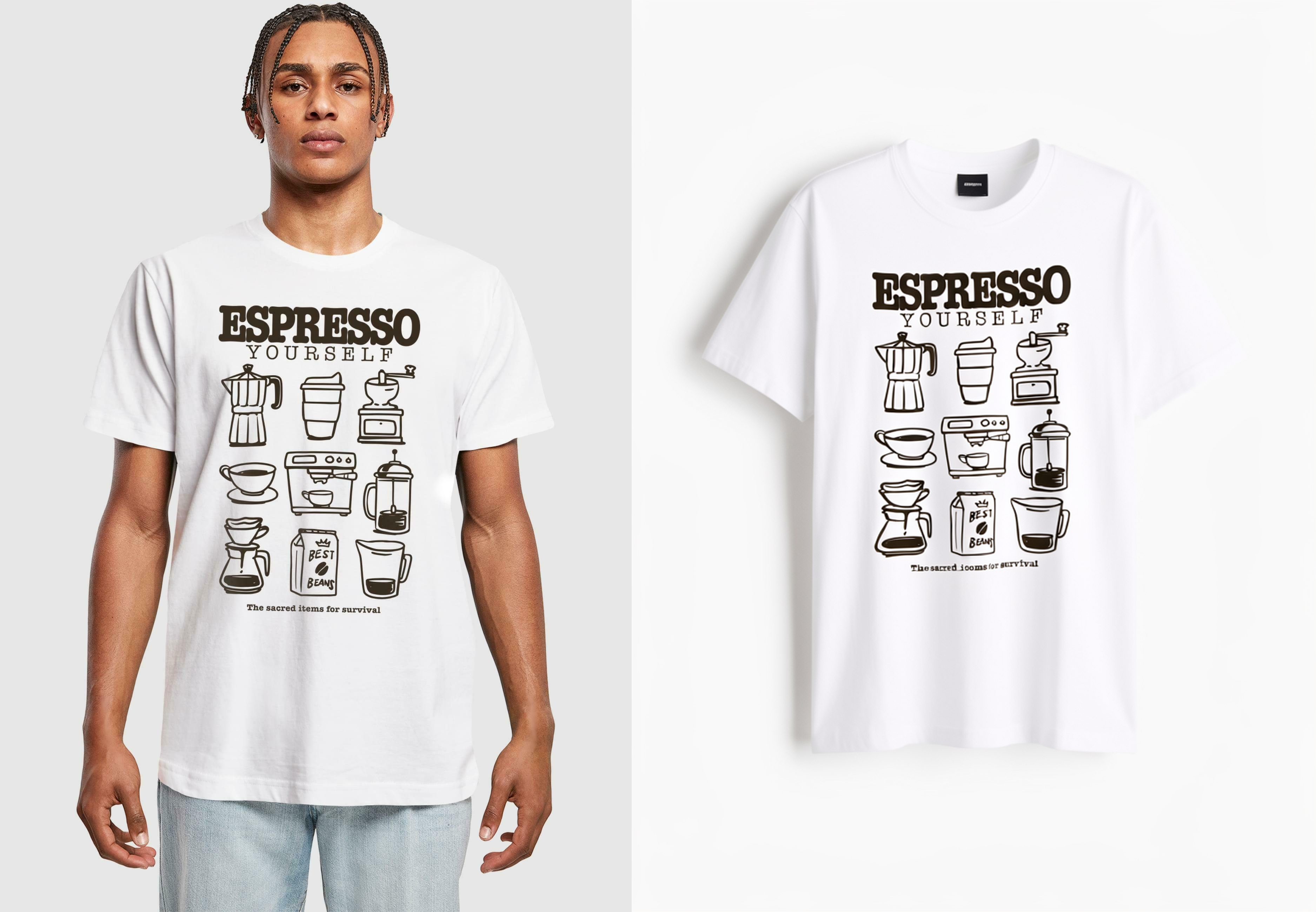 - TRYOFF extract the t-shirt over a white background, product photography style. NO HUMAN VISIBLE (the garments maintain their 3D form like an invisible mannequin).