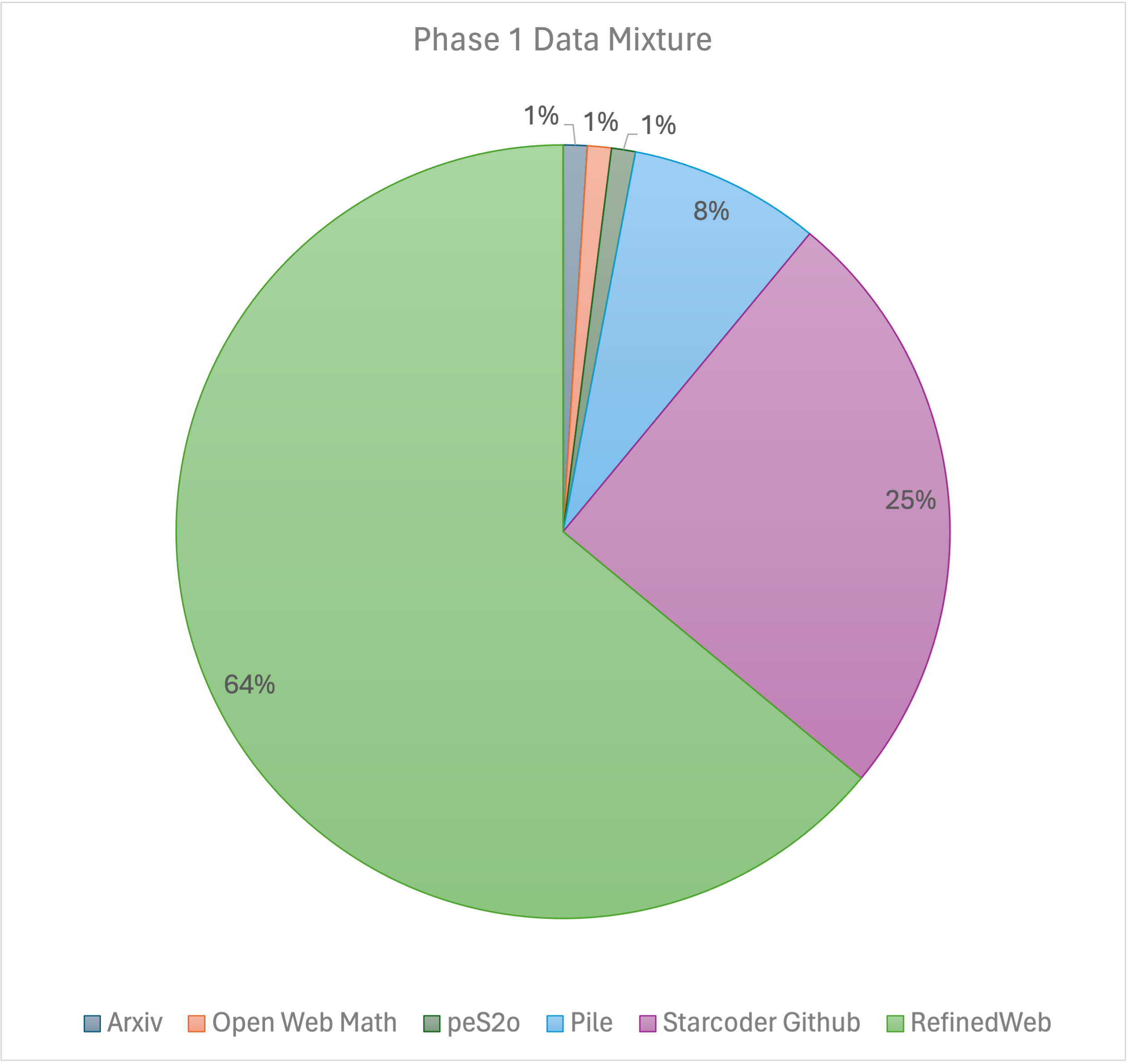 Our training recipe follows the MiniCPM's two-phases training method. Phase 1 uses a constant learning rate with linear warmup and is trained on 1 trillion tokens from large-scale open-source pretraining datasets, including RefinedWeb, Pile, Github data, etc. Phase 2 uses exponential learning rate decay and is trained on 250 billion tokens from phase 1 datasets and extra high-quality open-source datasets.