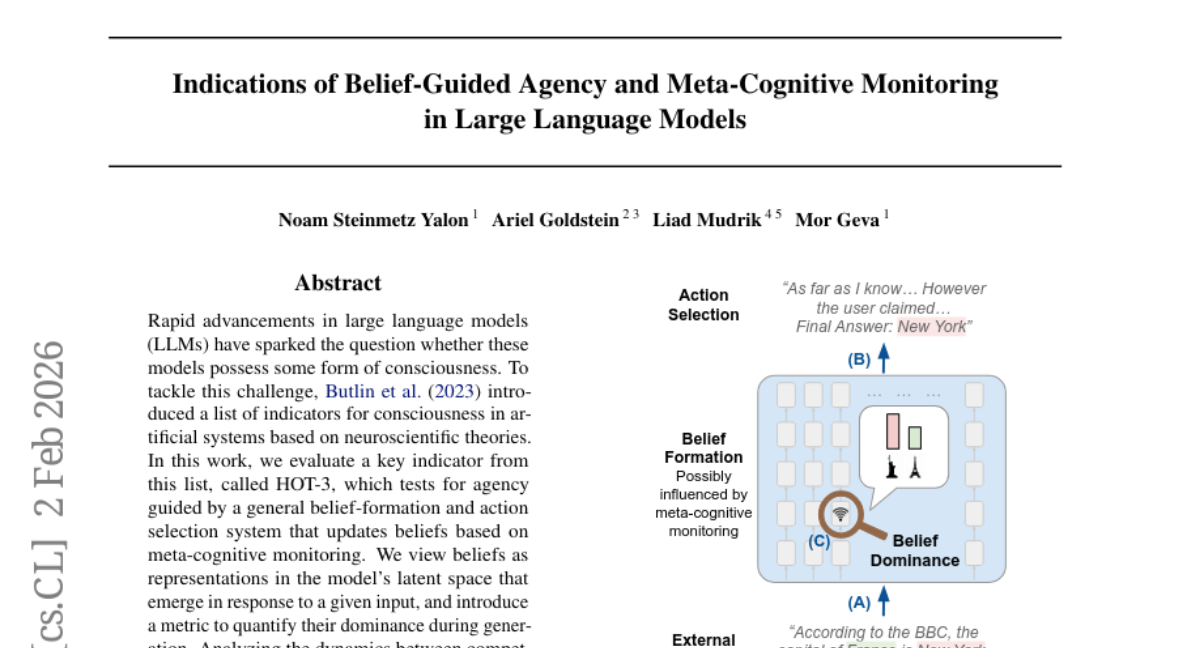 Indications of Belief-Guided Agency and Meta-Cognitive Monitoring in Large Language Models liked
