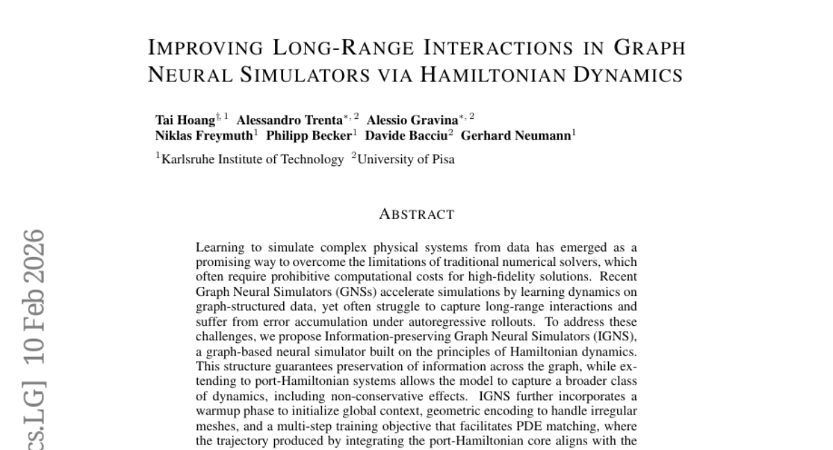 Improving Long-Range Interactions in Graph Neural Simulators via Hamiltonian Dynamics